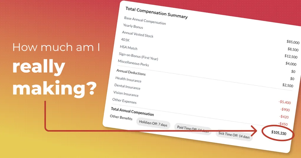 To make a wise decision, you need to understand your total compensation, which is the full financial and lifestyle package that comes with a role.